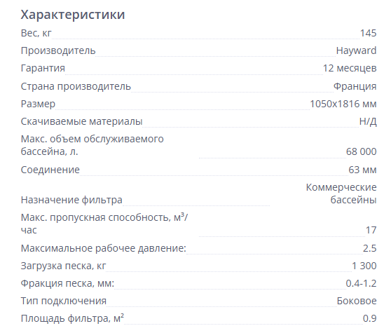 - Диаметр фильтра: 1050 мм