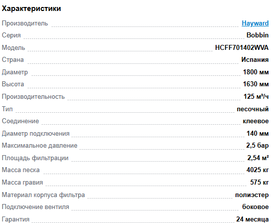 Фильтр Hayward HCFF701402WVA FA1000 Bobbin (D1800) для очистки воды в бассейнах объемом до 500 000 л.Производительность: 125 м³/час