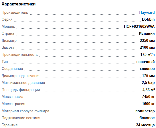 Производительность: 175 м³/час. Тип подключения: боковое. Соединение: 160мм. Загрузка песка: 7450 кг. Клапан режимов и трубная обвязка в комплект не входят.