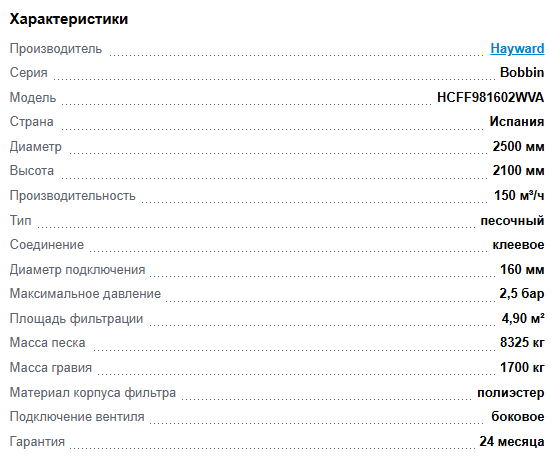 - Глубина фильтра: 1 м