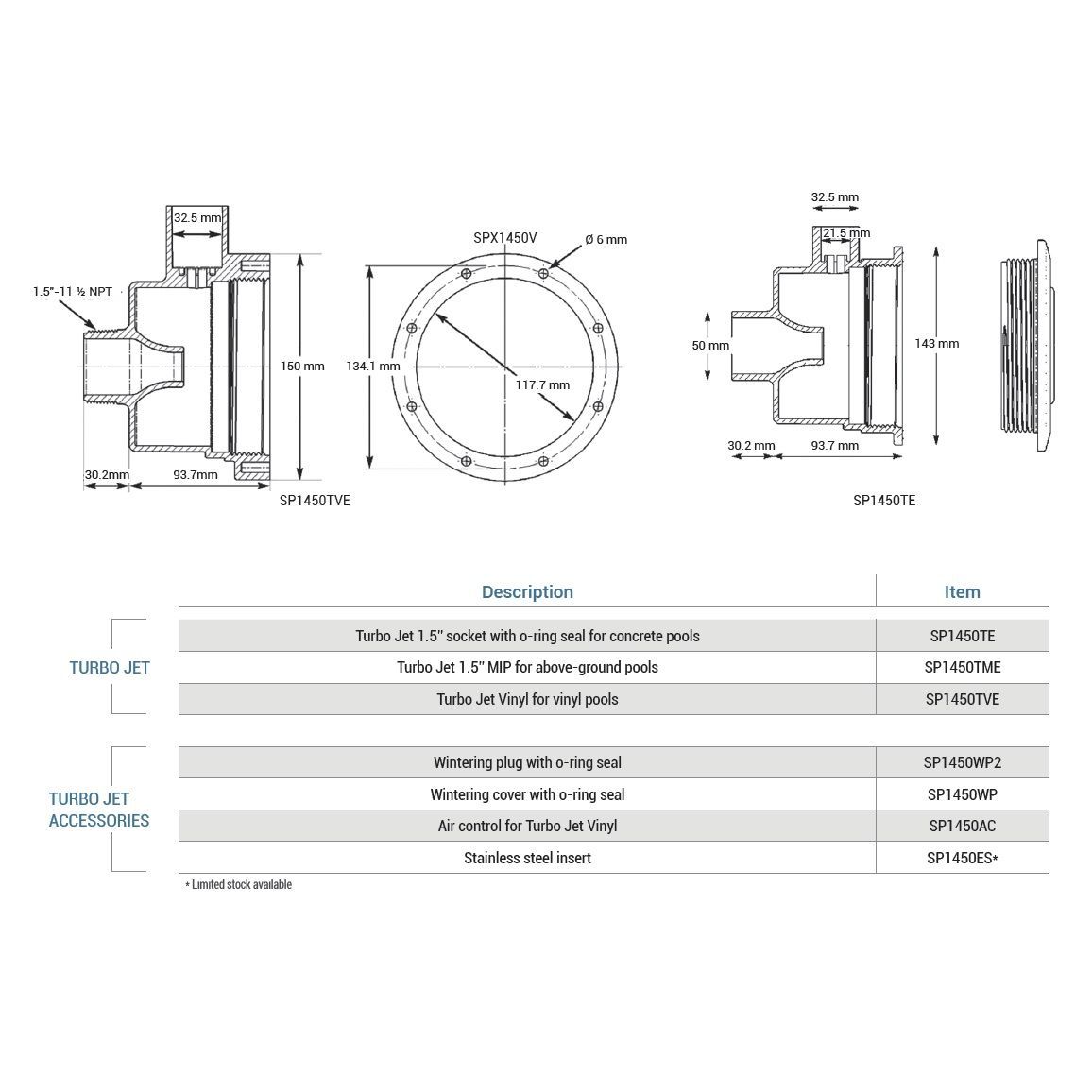 Форсунка гидромассажная Hayward TURBO-JET SP1450TVE под лайнер (50 мм)