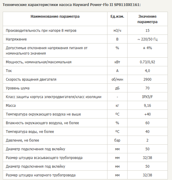 Насос Hayward PowerFlo II SP8110XE161 (230 В, 15 м3/ч, 1 HP)