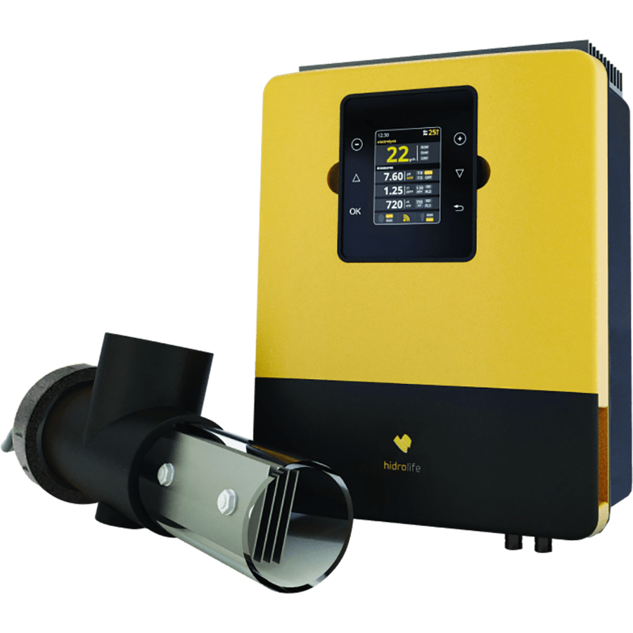 Станция контроля качества воды Hayward Hidrolife – это идеальный вариант для быстрой и качественной дезинфекции воды в бассейне. Обеззараживание воды происходит благодаря образованию хлора из поваренной соли, добавленной в бассейн. Вырабатываемый хлор препятствует развитию водорослей, микробов и бактерий в воде бассейна. Может работать с соленой и морской водой. Устройство позволяет управлять температурой и оборудованием для нагрева воды, хлоратором, освещением и фильтрацией. В зависимости от опционального расширения, вы можете регулировать уровень pH, Redox и свободный хлор в воде. Станция контроля оснащена цветным TFT дисплеем с диагональю 2.8 дюйма. Также, доступно Wi-Fi управление с вашего смартфона, через приложение Hayward Poolwatch, которое можно загрузить на Google Play или App Store. Для бассейнов объёмом: от 25 до 200 м³ Потенциал выработки хлора: от 8 до 33 г/ч Концентрация соли: от 3 до 100 г/л Соединение: 63 мм Газоанализатор и провод для его подключения входит в комплект только для моделей менее 50 грамм