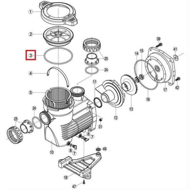 Уплотнительное кольцо крышки префильтра насоса Hayward K-FLO (RPUM0003.09R).